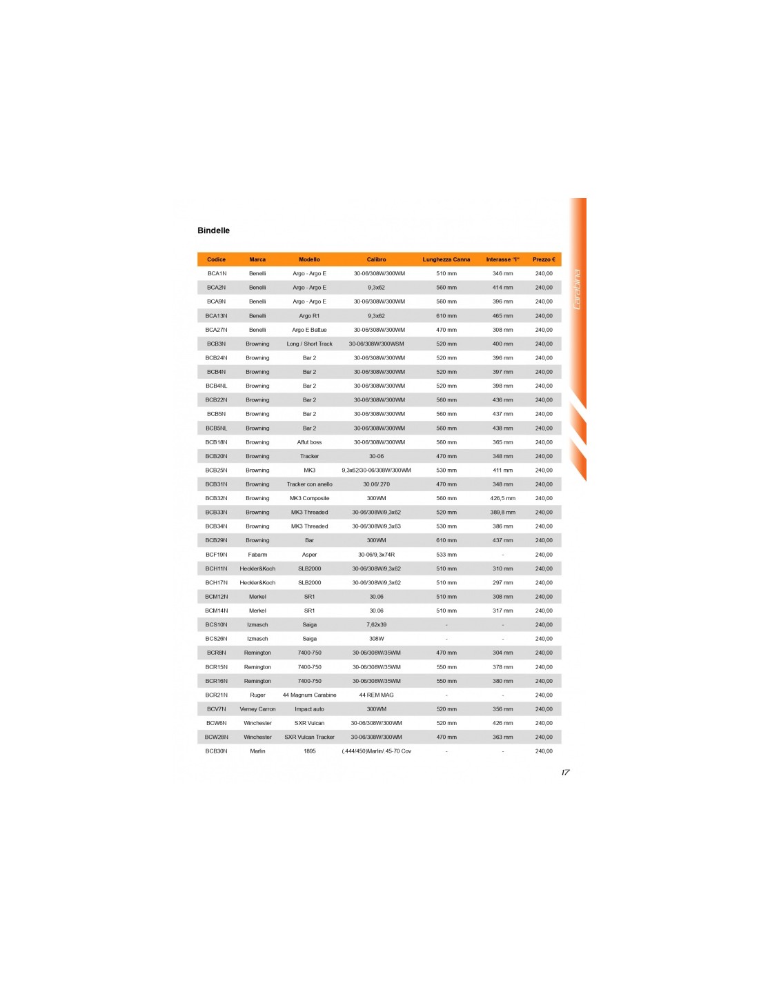 - Using the information collected, consult the Tabella Armi. If there are more rib models for the same gun then it will be necessary to check the center distance of the holes.