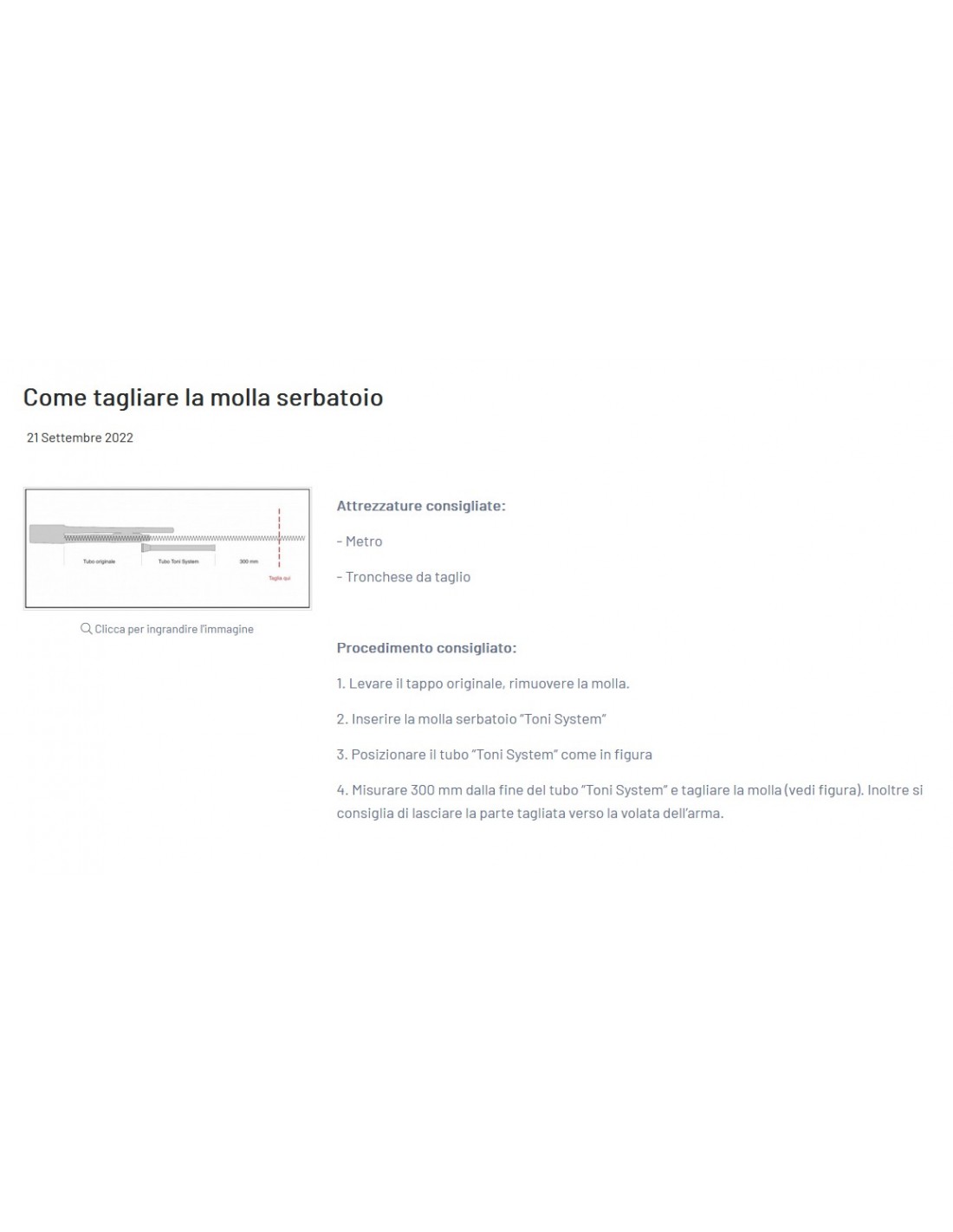 4. Mida 300 mm desde el extremo del tubo Toni System y luego corte el resorte. Además es