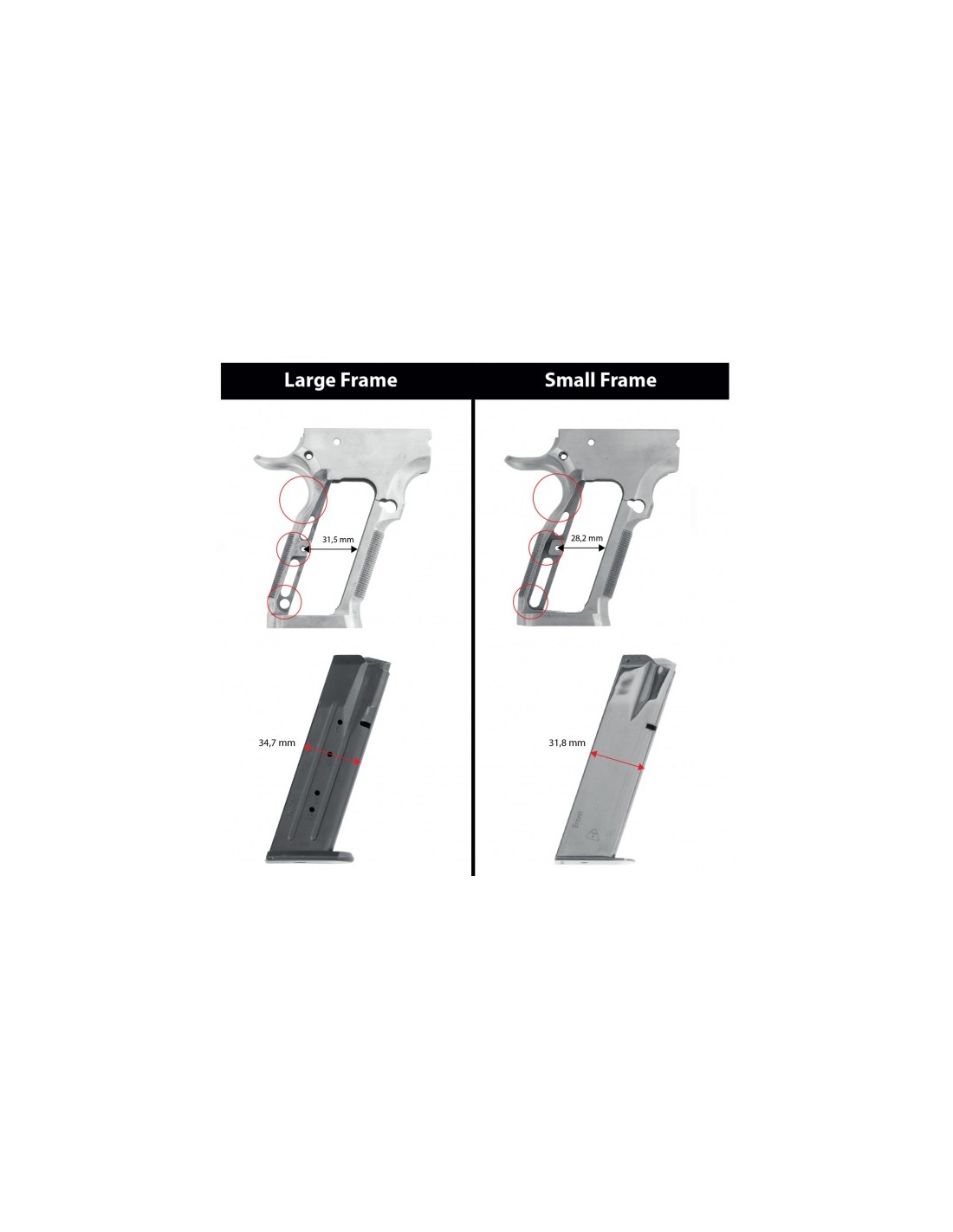 Poignées Vibram ultra courtes - grand cadre pour Tanfoglio - TONI SYSTEM