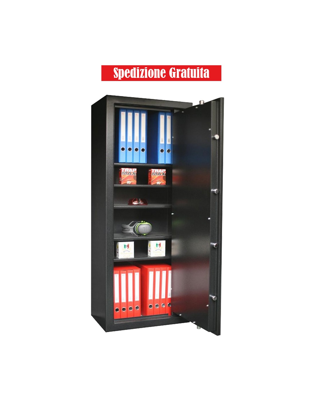 L’armadio blindato con 6 perni di grosse dimensioni e profondità.