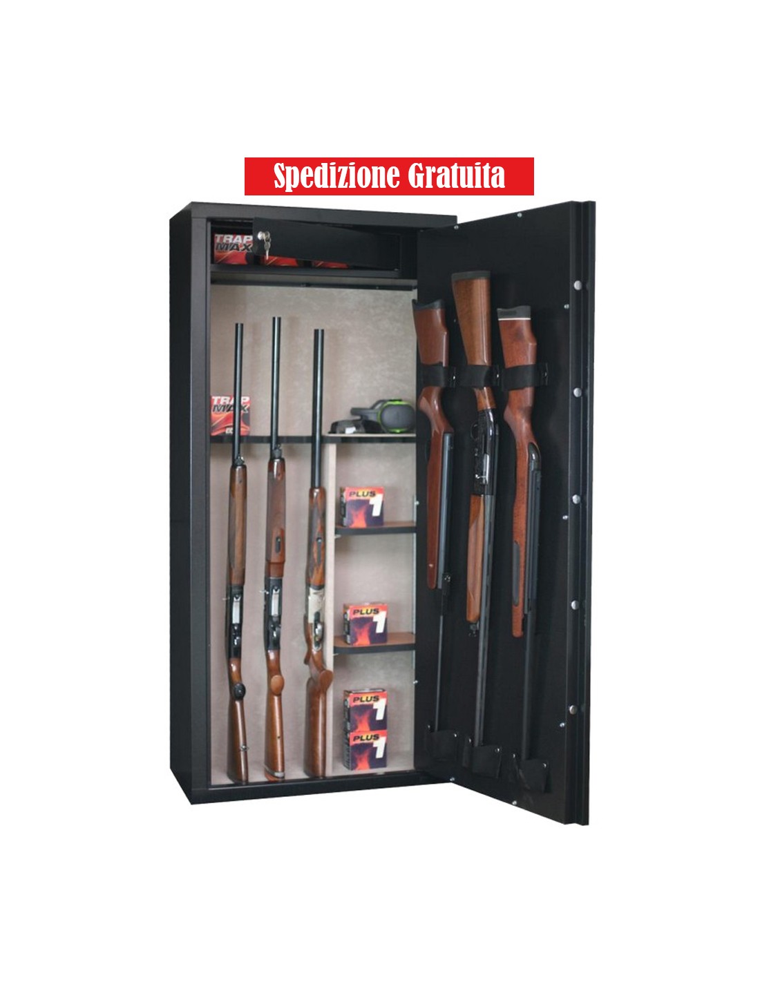 La cassaforte Sd16 Sentinel può ospitare un totale di 8 armi senza ottica e 8 armi con otticaLa piccola Sd16 viene fornita senza rivestimenti interni di pregio, è dotata di un comodo tesoretto con doppie chiavi.Costruita in acciaio di ottima qualità DD12 on spessore della struttura di 2mm, ha 5 cilindri in acciaio di 22mm con grande profondità.